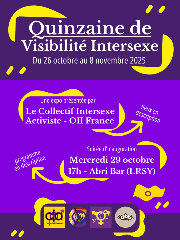 Venez découvrir l’exposition « Mon histoire intersexe » à l’occasion de la quinzaine de visibilité intersexe, qui se tiendra su 26 octobre au 8 novembre 2025.